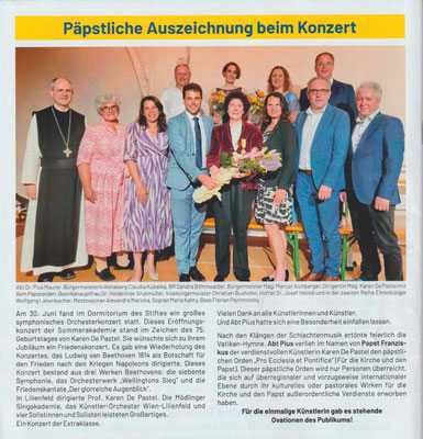 Friedenskonzert der SAL 2024 und Verleihung des päpstlichen Ehrenkreuzes